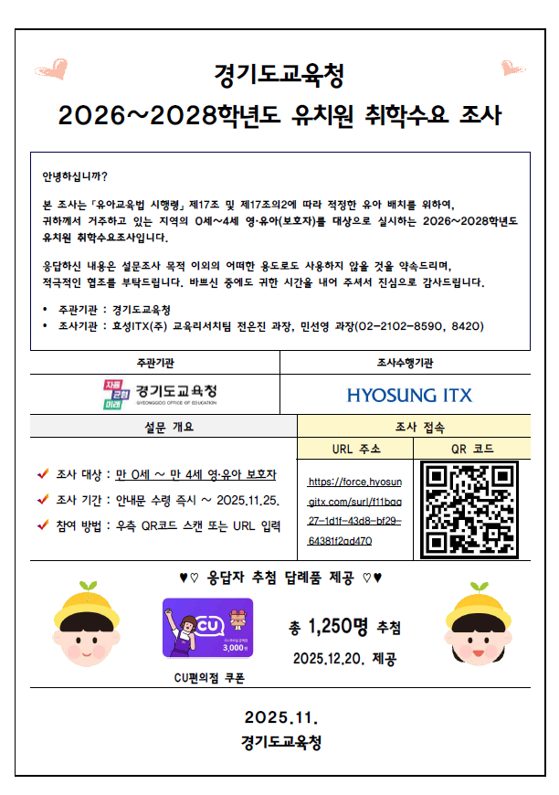 2026~2028Çг⵵ À¯Ä¡¿ø ÃëÇмö¿ä Á¶»ç¸¦ ½Ç½ÃÇÏ¿À´Ï Âü¿©ÇØ Áֽñ⠹ٶø´Ï´Ù.