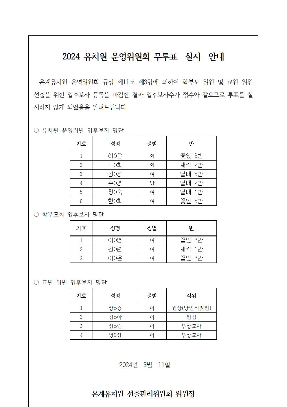 [ÀϹÝ] 2024 À¯Ä¡¿ø ¿î¿µÀ§¿øÈ¸ ¹× ÇкθðÀ§¿ø ¹«ÅõÇ¥ ½Ç½Ã ¾È³»