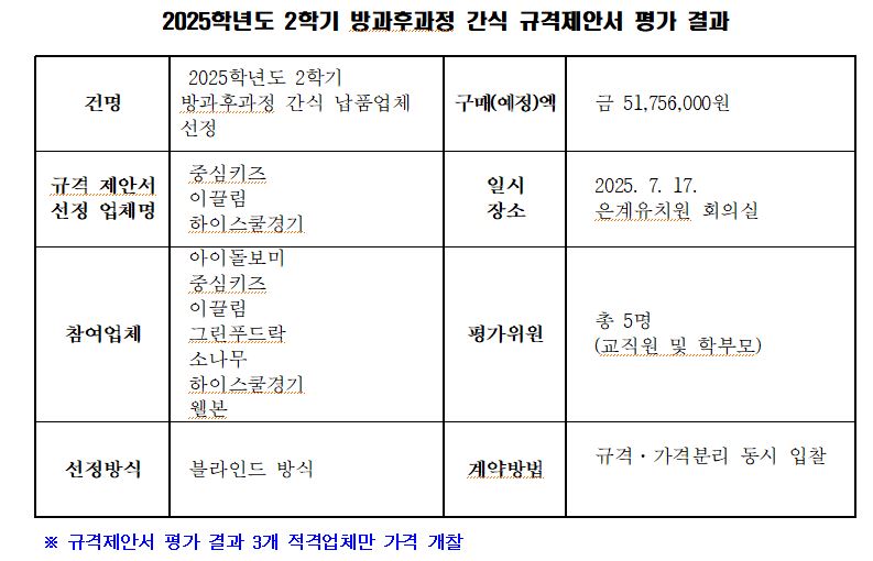 - 2025Çг⵵ Àº°èÀ¯Ä¡¿ø 2Çб⠹æ°úÈİúÁ¤ °£½Ä °¡°Ý °³Âû °á°ú ³³Ç°¾÷ü ¼±Á¤ °á°ú¸¦ ´ÙÀ½°ú °°ÀÌ °ø°³ÇÕ´Ï´Ù.