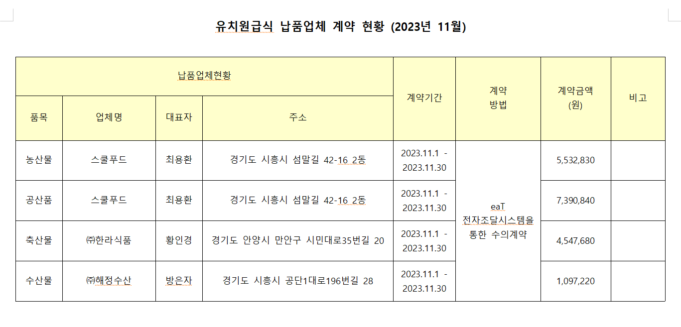 [ÀϹÝ] À¯Ä¡¿ø±Þ½Ä ³³Ç°¾÷ü °è¾àÇöȲ(2023.11.)