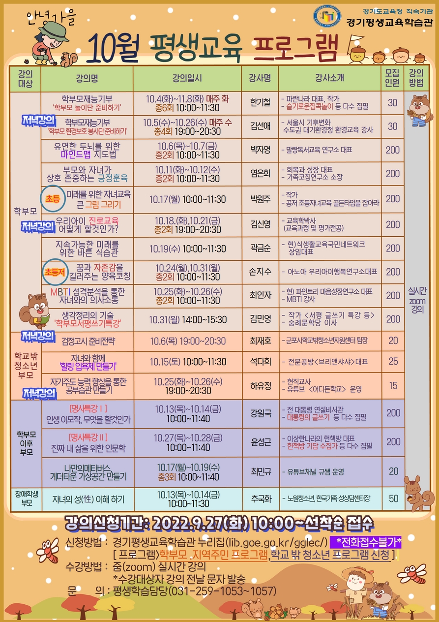 [ÀϹÝ] °æ±âÆò»ý±³À°ÇнÀ°ü 10¿ù Æò»ý±³À° ÇÁ·Î±×·¥ ¼ö°»ý ¸ðÁý ¾È³»