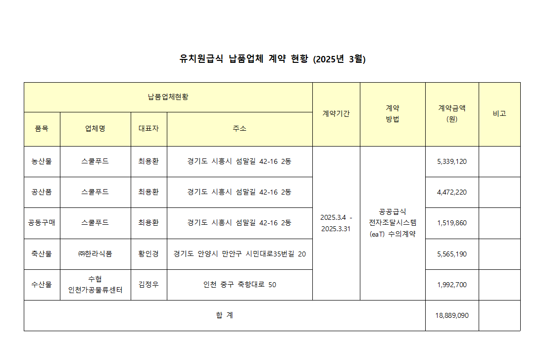 [ÀϹÝ] À¯Ä¡¿ø±Þ½Ä ³³Ç°¾÷ü °è¾àÇöȲ(2025.3)