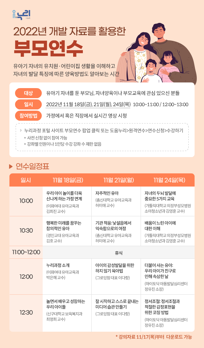 2.¿¬¼ö±â°£: 2022.11.18(±Ý),21(¿ù),24(¸ñ) 10:00~11:00/ 12:00~13:00