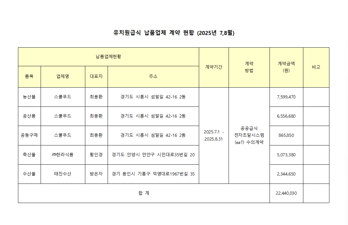 [ÀϹÝ] À¯Ä¡¿ø±Þ½Ä ³³Ç°¾÷ü °è¾àÇöȲ(2025.7~8)