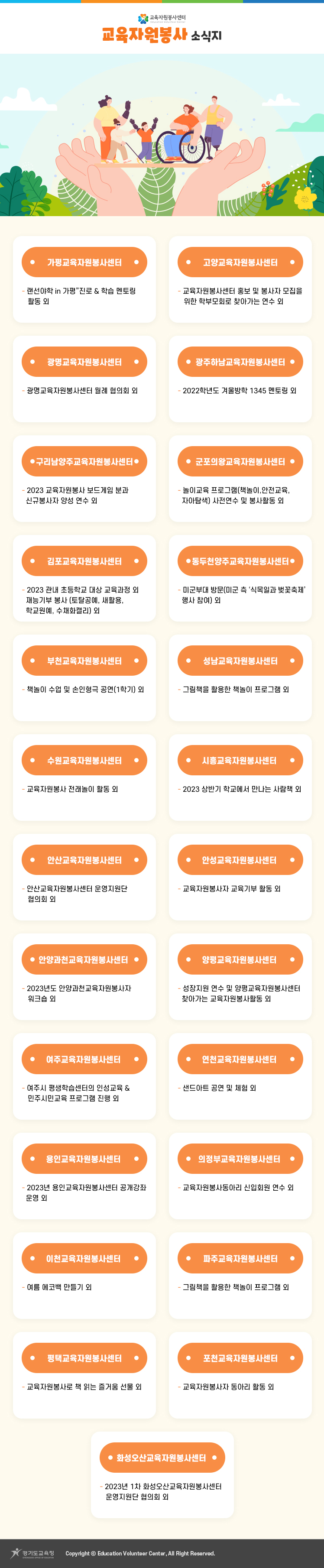 2. ±³À°ÀÚ¿øºÀ»ç È«º¸¸¦ À§ÇÑ ¼Ò½ÄÁö 5È£¸¦ Á¦ÀÛÇÏ¿© ¾Æ·¡¿Í °°ÀÌ ¾Ë·Áµå¸®´Ï, °¢ ±â°ü¿¡¼´Â ȨÆäÀÌÁö žÀç µîÀ» ÅëÇØ È«º¸ÇÏ¿© Áֽñ⠹ٶø´Ï´Ù.