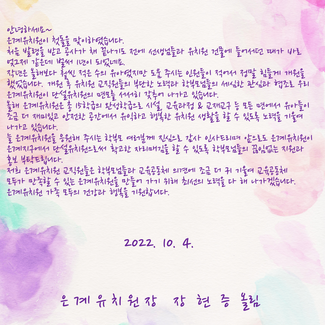 [ÀϹÝ] Àº°èÀ¯Ä¡¿ø ù µ¹ ±â³ä ¿øÀå¼±»ý´Ô Àλ縻ÀÇ Ã·ºÎÀ̹ÌÁö 1