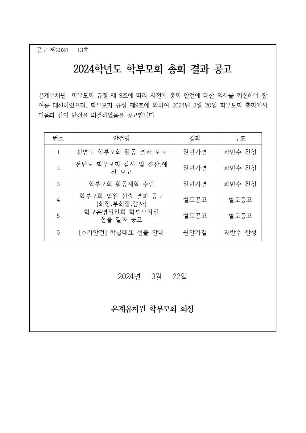 [ÀϹÝ] 2024 ÇкθðÃÖ ÃÑȸ °á°ú °ø°í