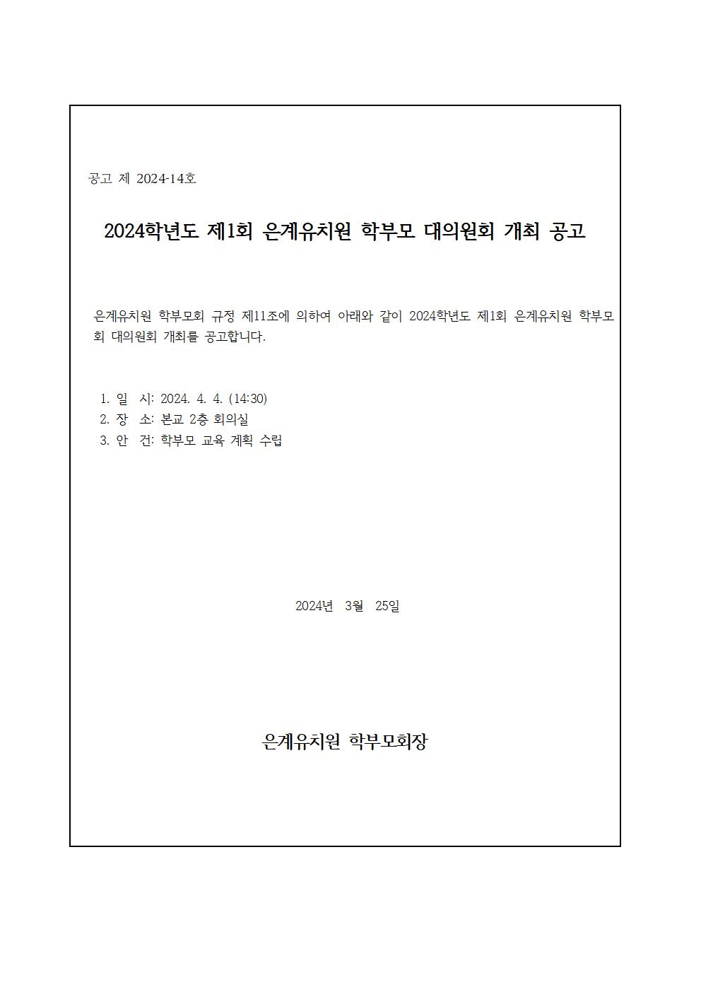 [ÀϹÝ] 2024 Á¦1ȸ Àº°èÀ¯Ä¡¿ø Çкθð´ëÀÇ¿øÈ¸ °³ÃÖ °ø°í