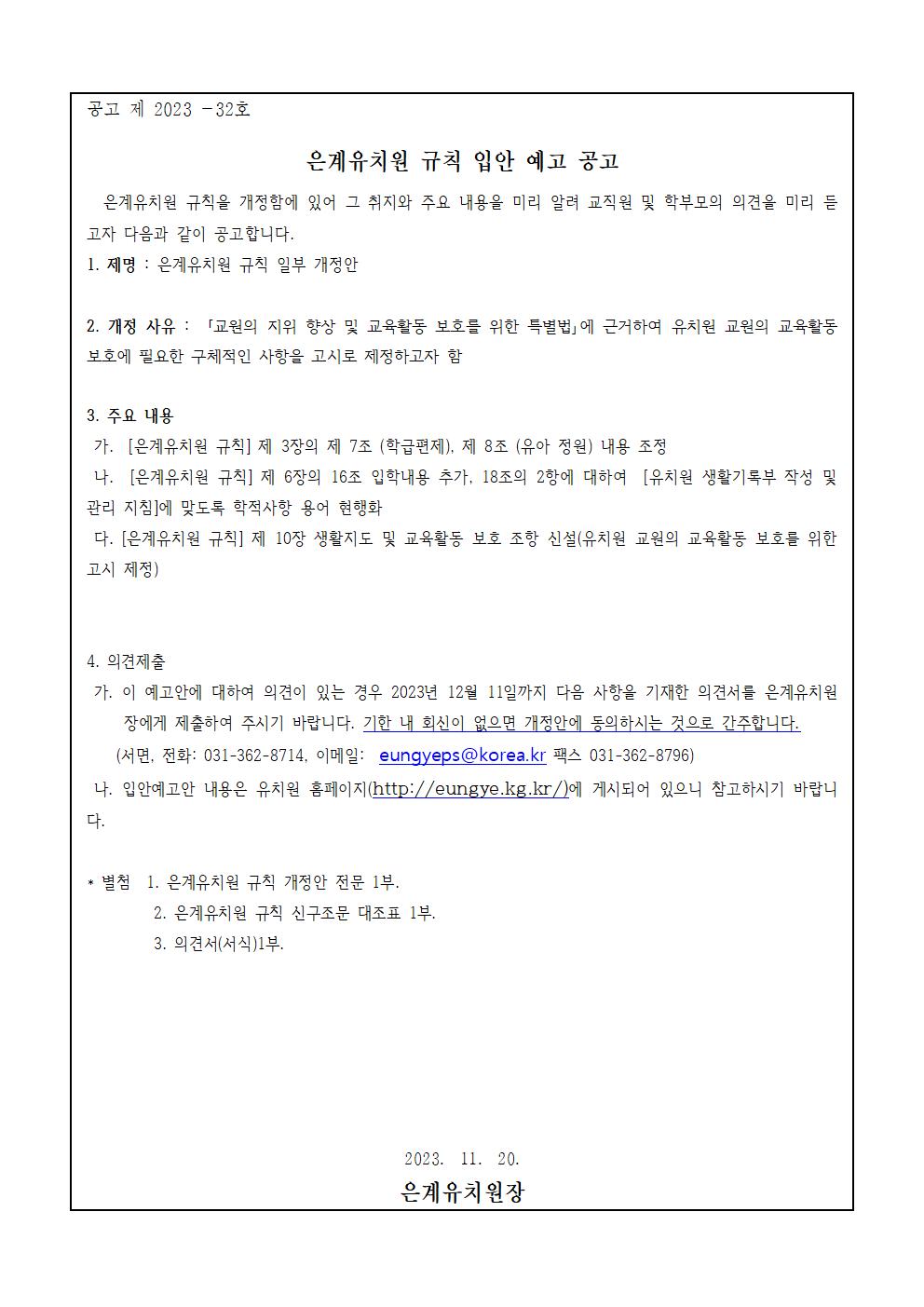 [ÀϹÝ] 2023 Àº°èÀ¯Ä¡¿ø ±ÔÄ¢ ÀÔ¾È ¿¹°í °ø°í