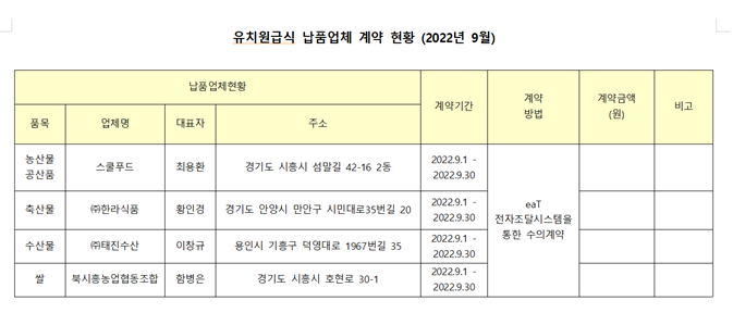 [ÀϹÝ] 2022³â 9¿ù À¯Ä¡¿ø±Þ½Ä ³³Ç°¾÷ü °è¾à ÇöȲ