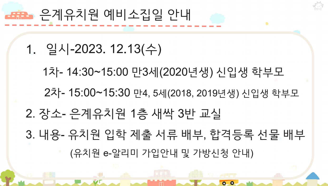 [ÀϹÝ] 2024 Àº°èÀ¯Ä¡¿ø ½ÅÀÔ»ý ¿¹ºñ¼ÒÁýÀÏ ¾È³»